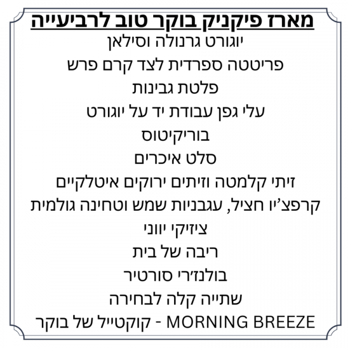 מארז פיקניק בוקר טוב לרביעייה