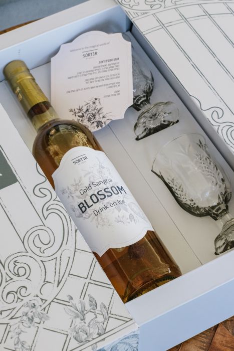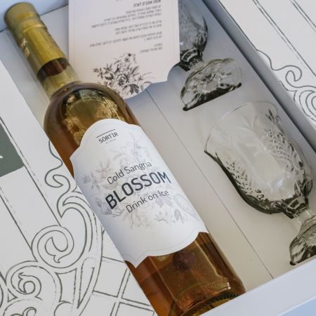 מארז קלאסי עם הסנגריה שלנומגיע עם שתי כוסות מעוצבות להשלמת החוויה.
